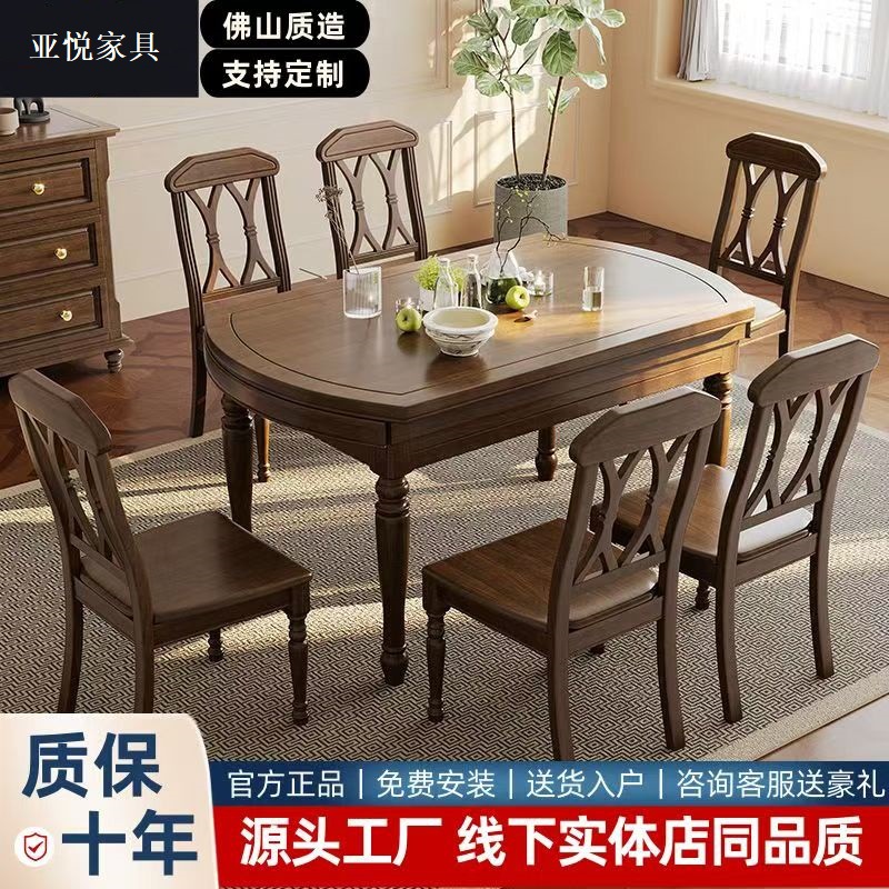 Meja Makan Kayu Solid Pedesaan Gaya Amerika Rumah Tangga Restoran Prancis Retro Lipat Meja Makan dan Kursi Perabot Kombinasi