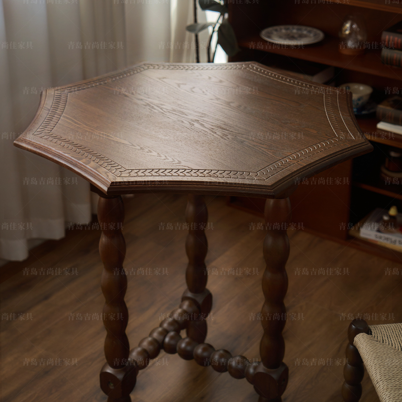 Meja Makan Kayu Solid Prancis Meja Makan Persegi Retro Kafe Restoran Gaya Pertengahan Bar Teh Susu Toko Meja Makan Kursi