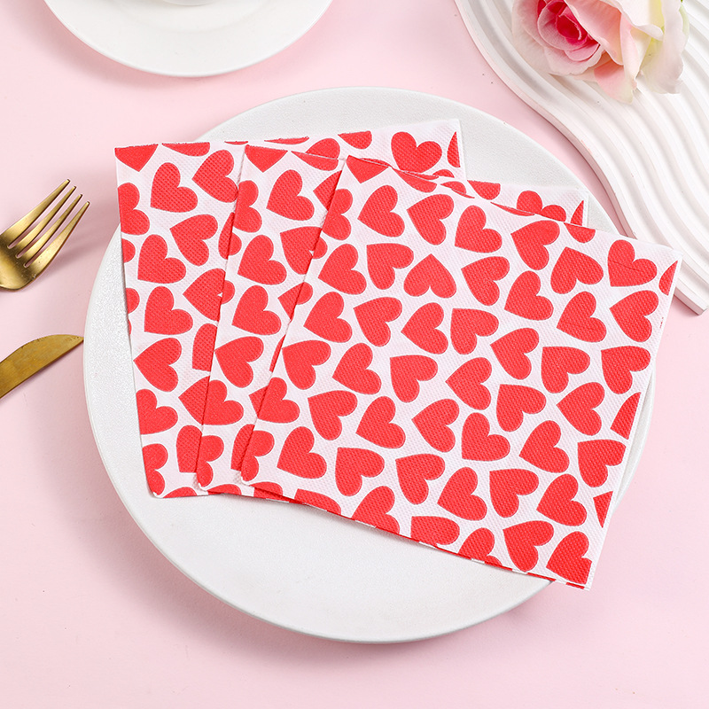 Crossborder Hari Valentine Hari Libur Model Baru Dekorasi Meja Makan Segel Kertas Serbet Bersablon Hari Valentine Lapisan Ganda Grosir