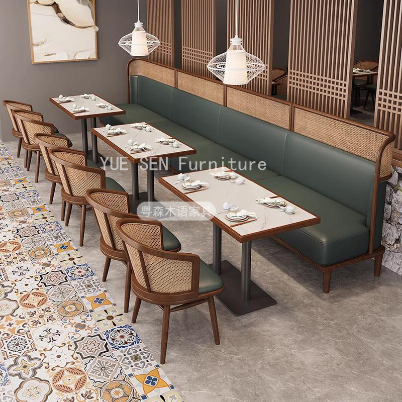 Restoran Bertema Kayu Solid Rotan Kursi Makan Kursi Makan Restoran Restoran Hot Pot Restoran Teh Susu Kombinasi Meja dan Kursi Kafe