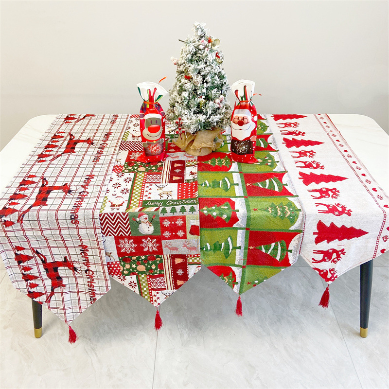 Taplak meja Natal, perlengkapan dekorasi Natal pohon Natal orang tua berlari rusa katun taplak meja dekorasi meja Natal