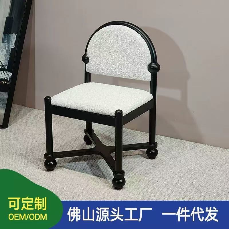 法式复古家用餐椅实木北欧中古简约靠背设计师椅民宿卧室化妆椅子