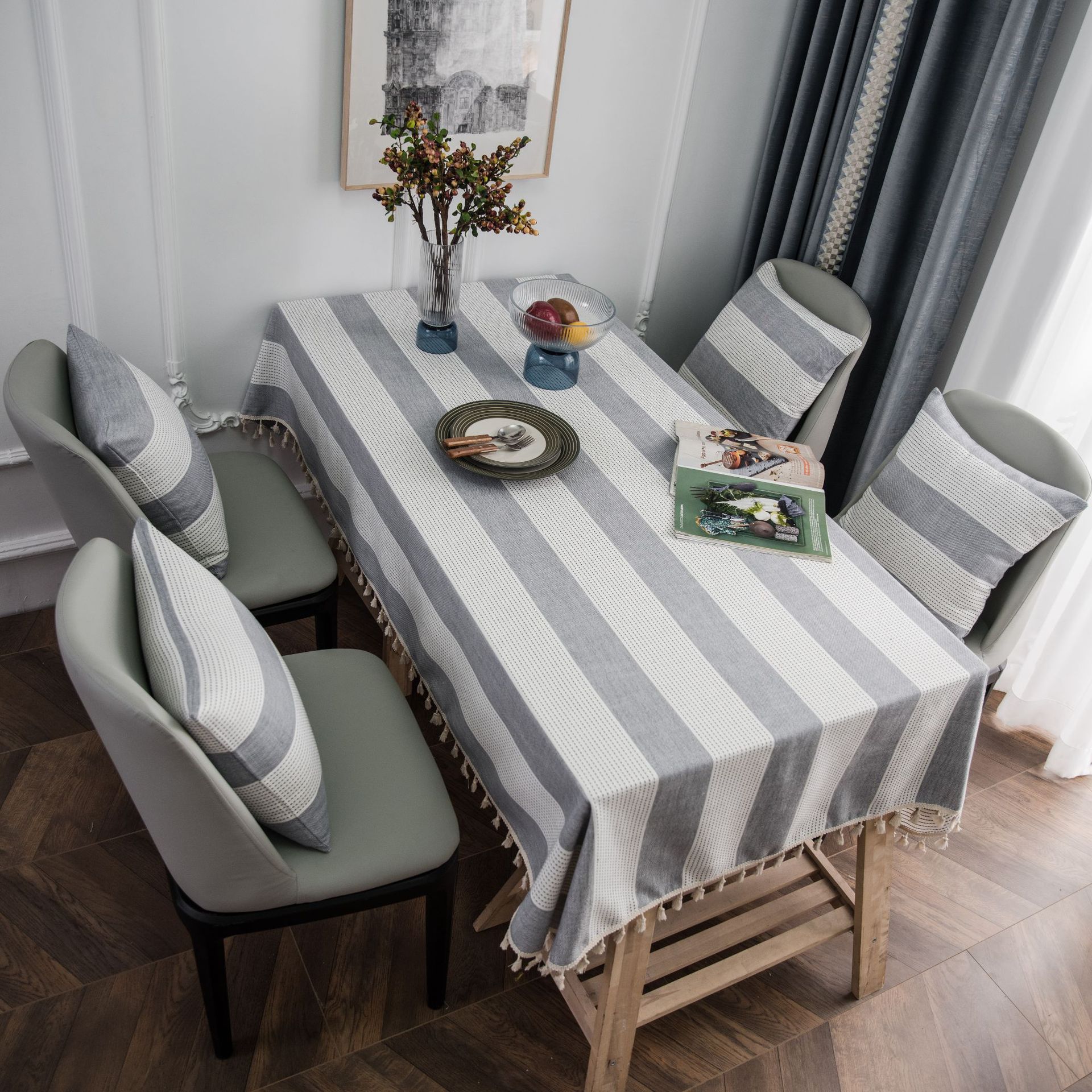 Yi Qiyun taplak meja celup benang, taplak meja Rumah Sederhana Nordik abu-abu bergaris katun imitasi linen kopi persegi panjang