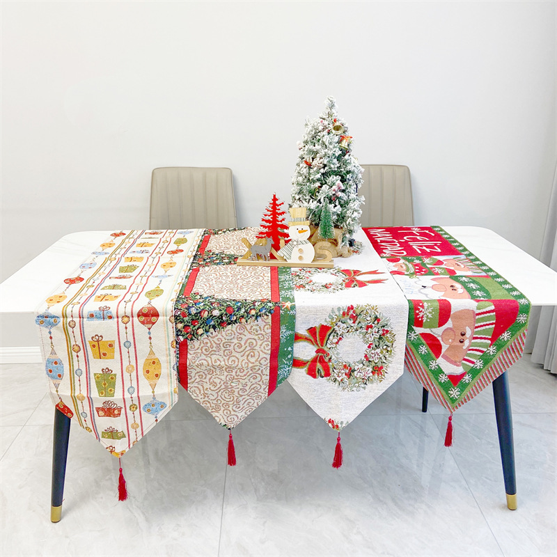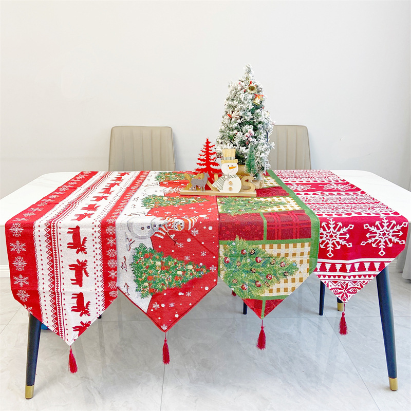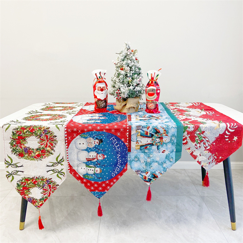Perlengkapan dekorasi Natal baru Natal linen dicetak taplak meja taplak meja dekorasi taplak meja tatakan