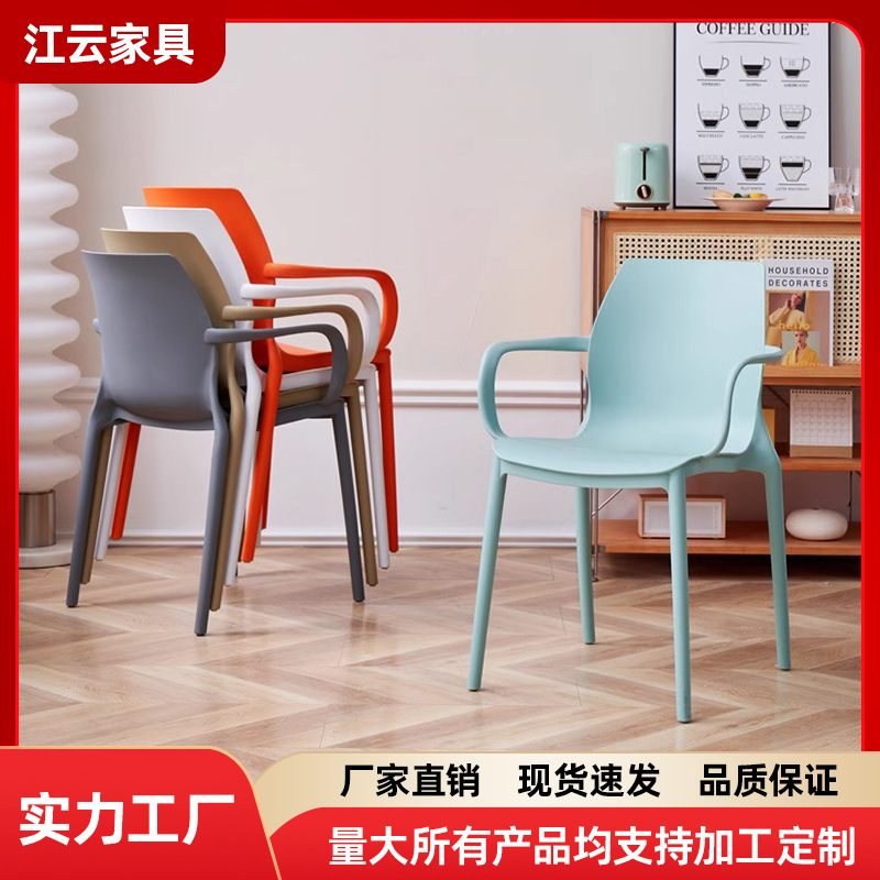 Kursi Plastik Tebal Nordik Kursi Negosiasi Rumah Tangga Modis Meja Makan Orang Dewasa Kursi Meja Makan Sandaran Tangan Plastik Kursi Meja