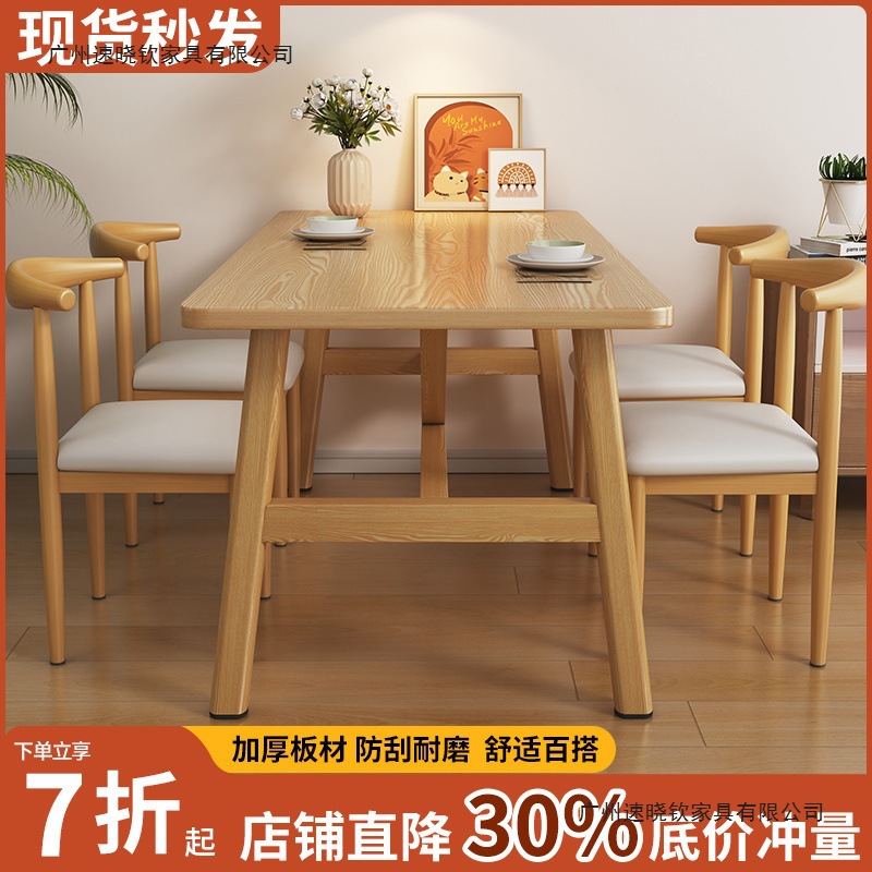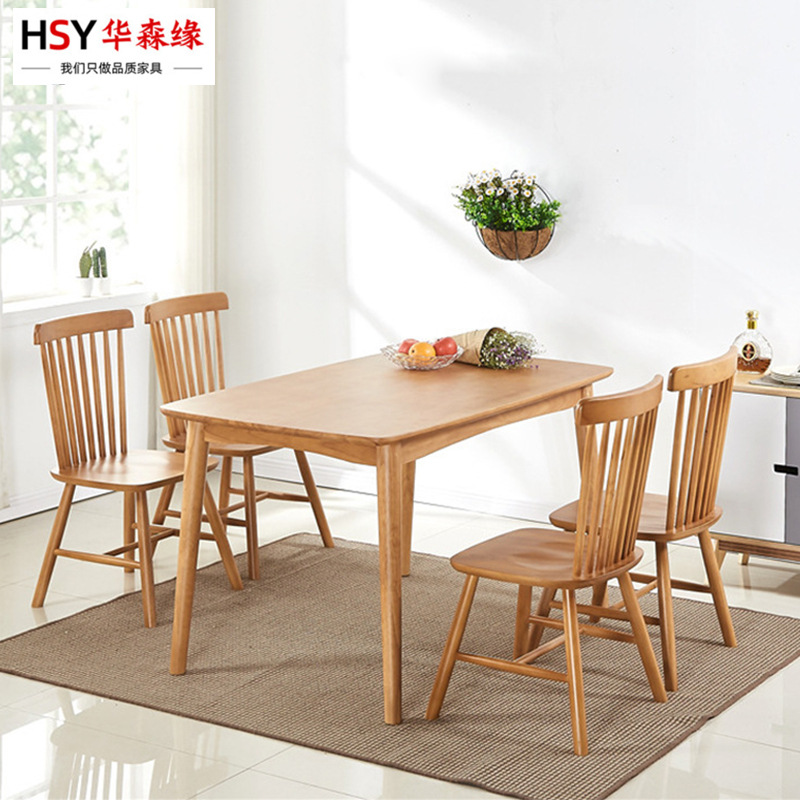 Meja makan kayu polos rumah tangga, meja makan dan kursi Nordik sederhana kayu solid, meja makan persegi panjang, ruang sewa, apartemen, meja makan dan kombinasi kursi