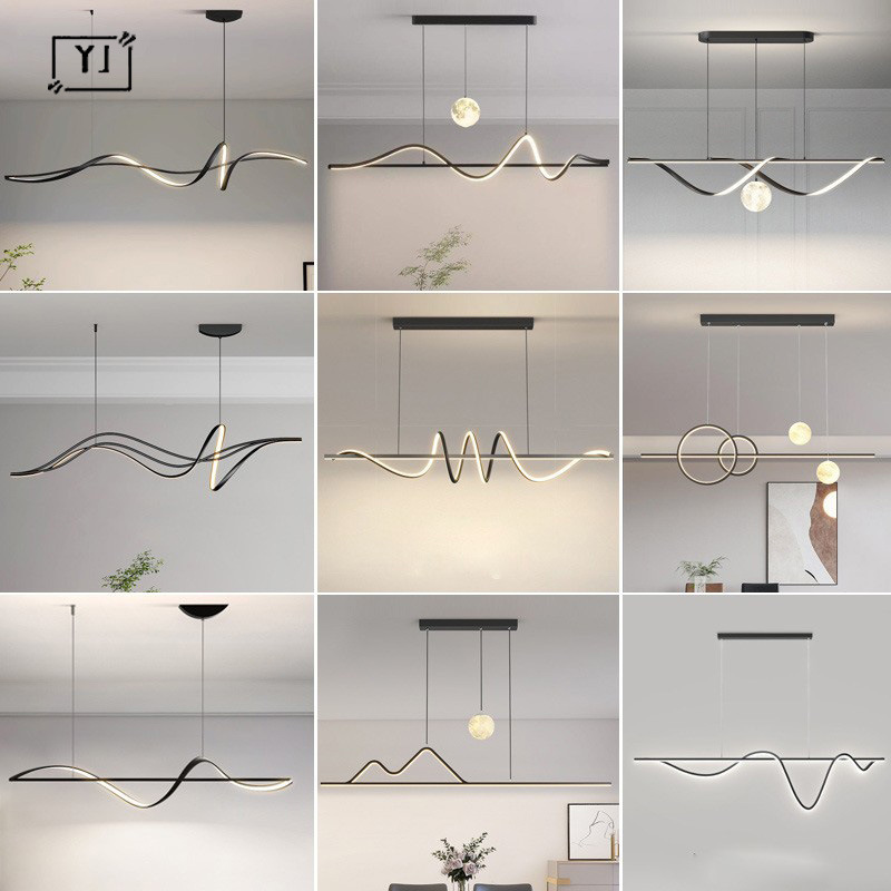 Lampu gantung ruang makan, cahaya kreatif mewah modern minimalis atmosfer bar ruang makan strip desainer lampu meja minimalis Nordik