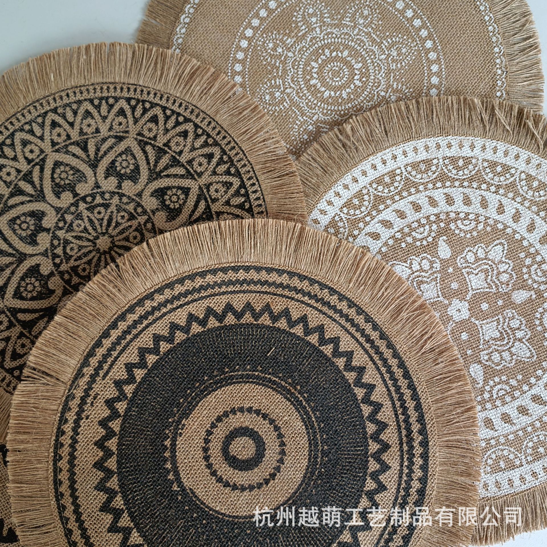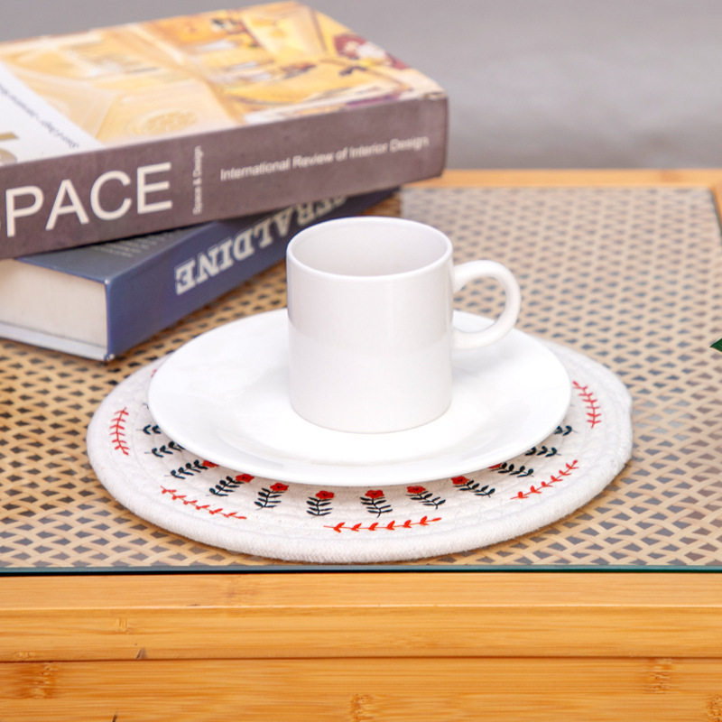 Alas cangkir tatakan benang katun gaya Eropa bulat, tikar buah isolasi rumah tangga non-slip dekorasi meja alas peralatan makan tikar mangkuk