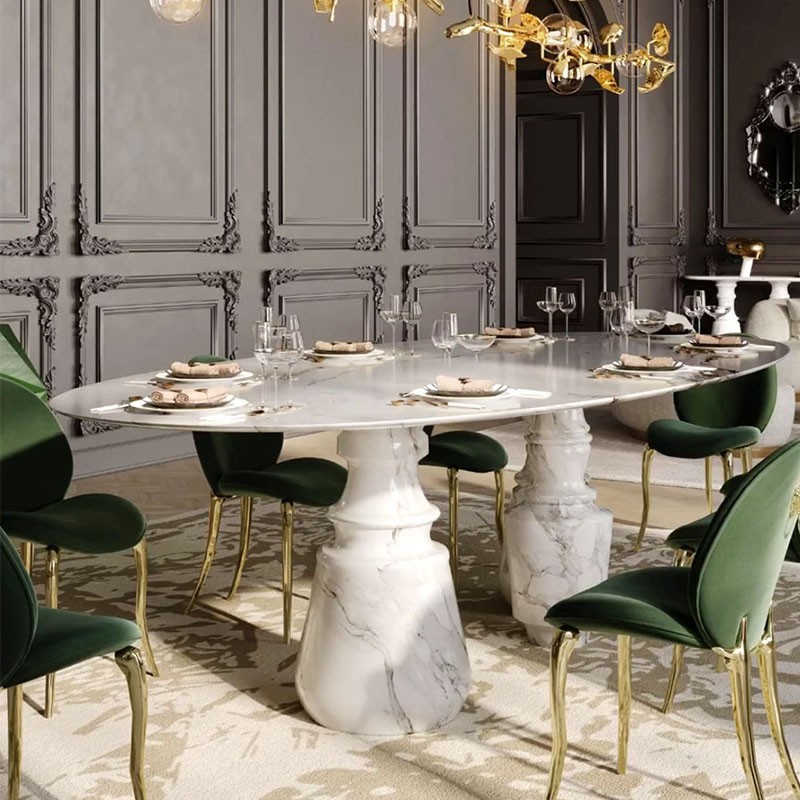Kemewahan Ringan Kamar Makan Marmer Superior Modern Villa Rumah Tangga Gaya Italia Desain Artistik Meja Makan dan Kursi Tidak Teratur