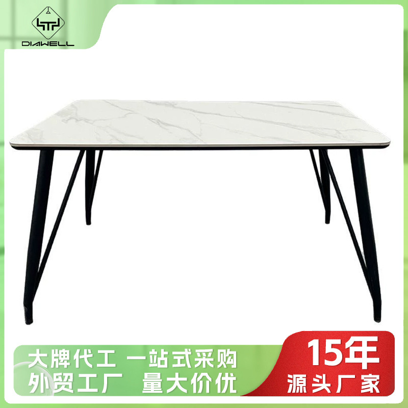 Meja Makan Mikrokristalin Mewah Gaya Italia Meja Makan Silang Kaki Kecil Meja Makan Meja Restoran Rumah Tangga Persegi Panjang Kombinasi Meja Makan
