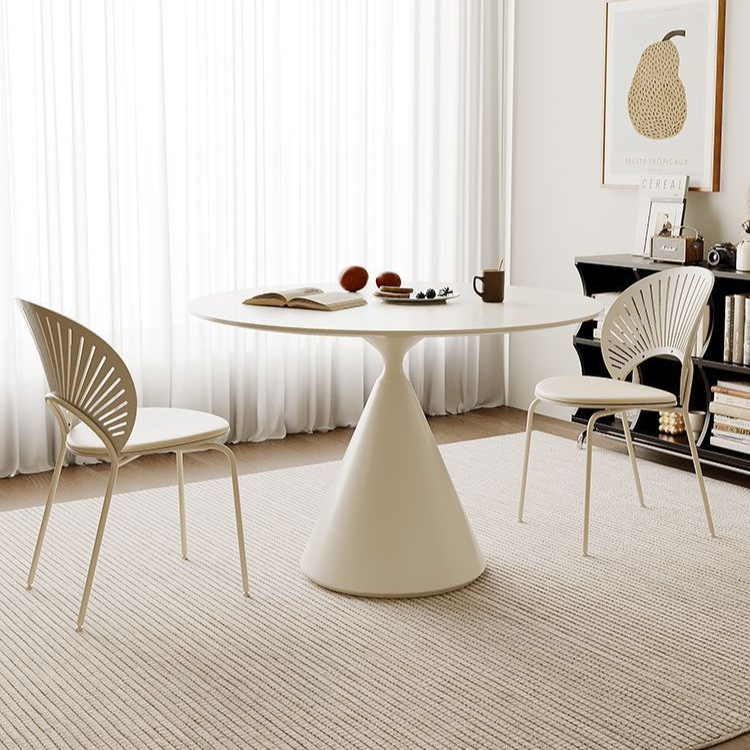 Meja Makan Papan Batu Putih Murni Tipe Rumah Tangga Kecil Modern Kombinasi Kursi Makan Meja Makan Setengah Lingkaran Gaya Krim Sederhana