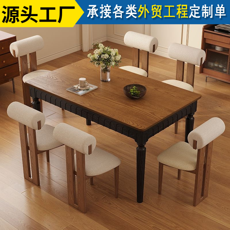 Meja Makan Kayu Solid Gaya Kuno Meja Makan Meja Makan dan Kursi Gaya Amerika Tipe Rumah Tangga Sederhana Persegi Panjang Retro Prancis Kombinasi Meja Makan dan Kursi