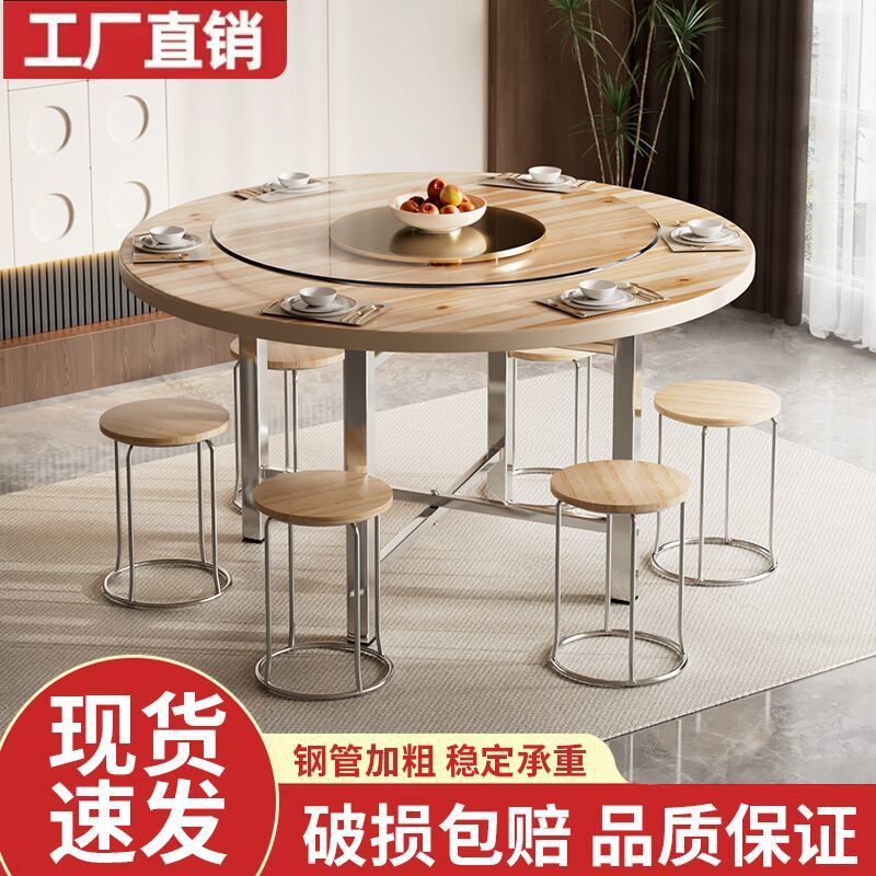 Meja Makan Kayu Solid Tebal Perjamuan Perjamuan Rumah Meja Bundar Restoran Komersial Hotel Meja Lipat Meja Bundar
