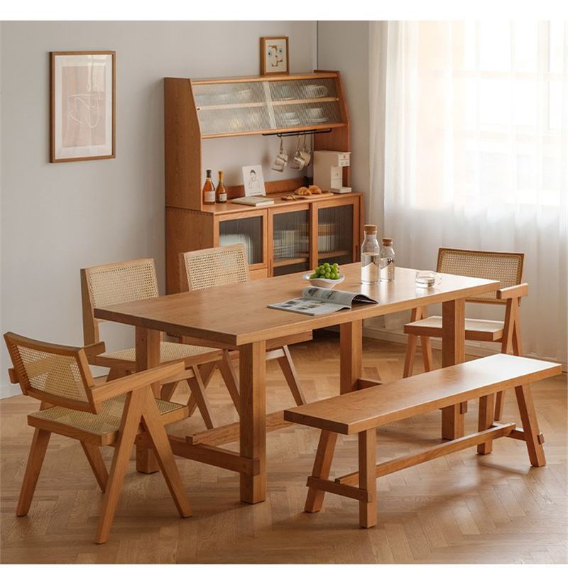 Set meja makan dan kursi kayu solid Nordik, meja makan ruang makan bergaya Jepang yang simpel, meja makan restoran kayu ceri minimalis modern.