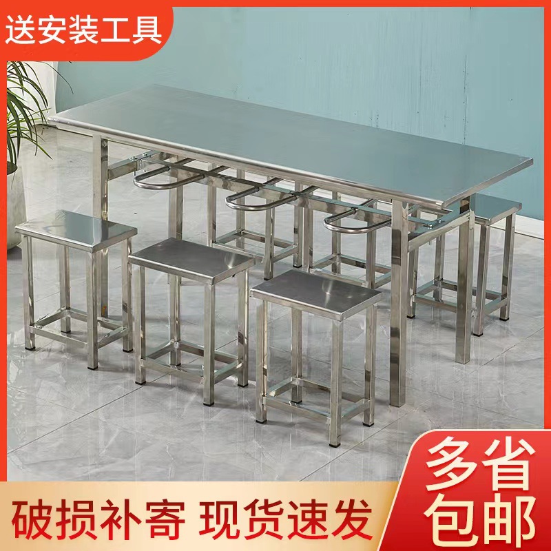 Stainless steel kursi gantung meja makan meja makan kantin 4 orang 6 orang kursi staf pabrik sekolah kantin persegi panjang meja makan p ^