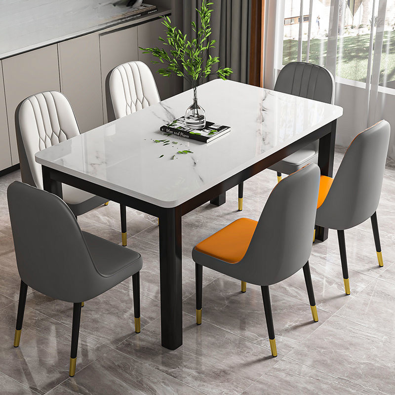 Meja makan persegi panjang, piring batu marmer apartemen kecil rumah tangga, dengan kombinasi kursi, baja tahan karat, Meja restoran, ringan, mewah
