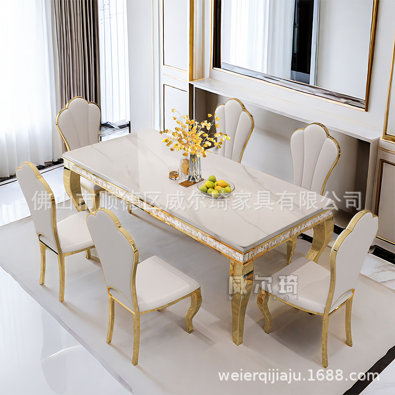 Kemewahan Ringan Stainless Steel Marmer Meja Makan Batu Papan Persegi Panjang Rumah Tangga Restoran Kelas Atas Modern Sederhana Kombinasi Meja Makan