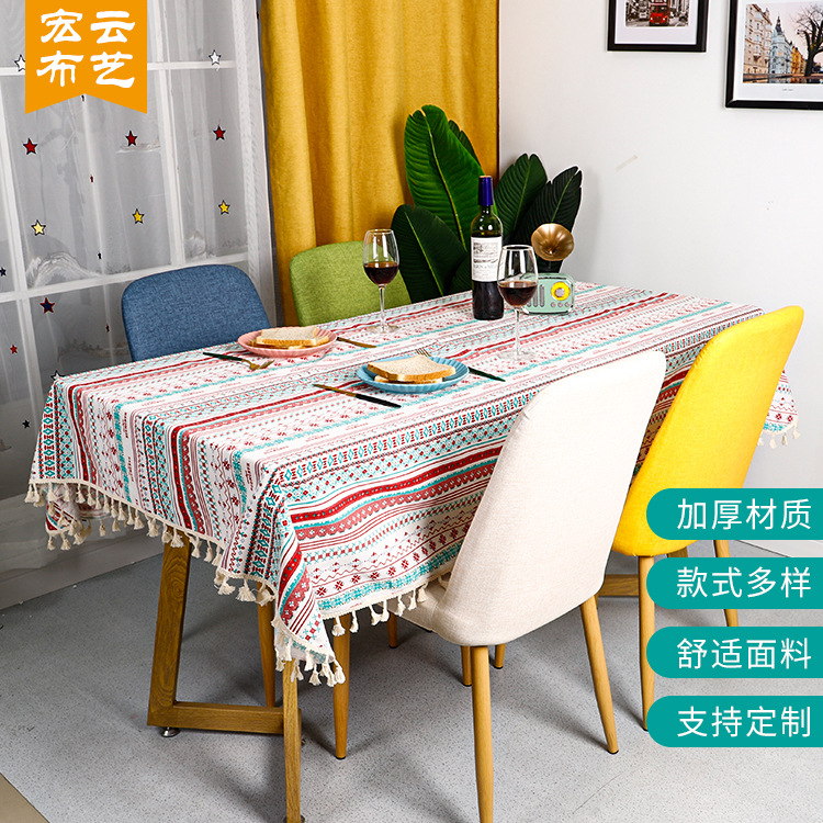 Taplak meja gaya etnik retro gaya bohemian taplak meja makan kain linen katun cetak taplak meja kopi taplak meja persegi panjang grosir
