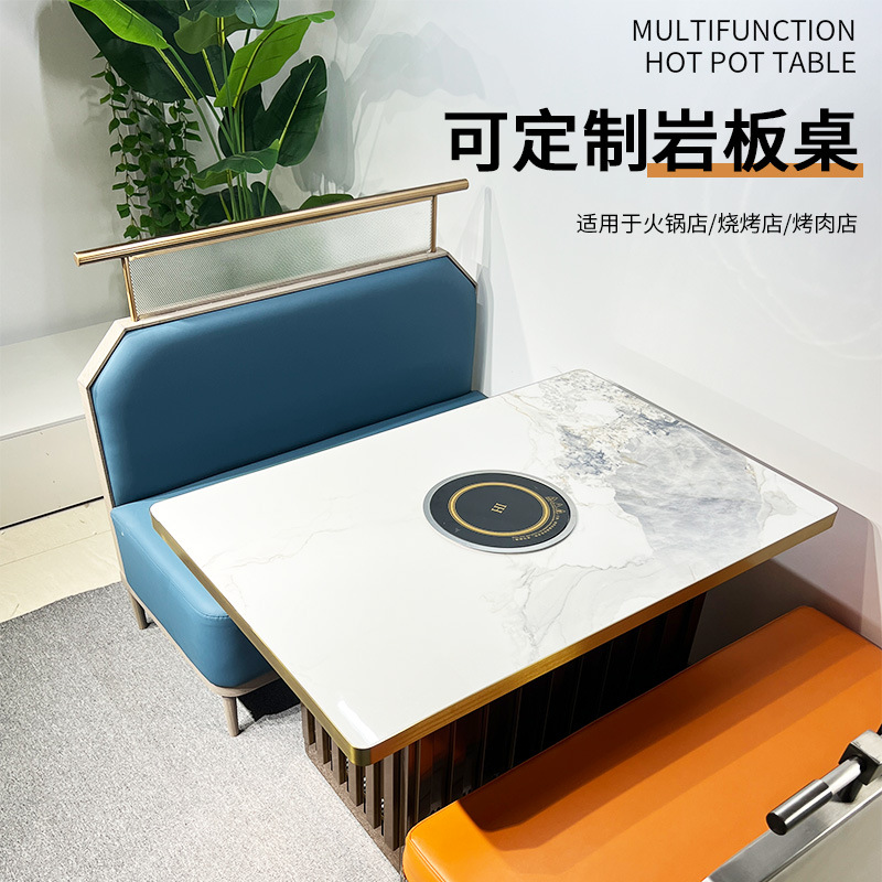 Meja Makan Terpadu Kompor Induksi Restoran Hot Pot dengan Laci Meja Makan Kayu Solid Kombinasi Meja Makan Khusus Restoran Retro