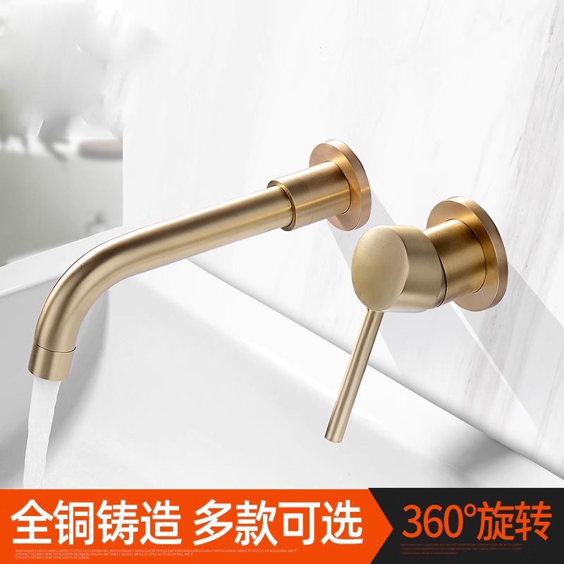 Keran dinding bahan tembaga emas disikat, keran wastafel cuci tangan, keran wastafel tersembunyi, keran dinding panas dan dingin