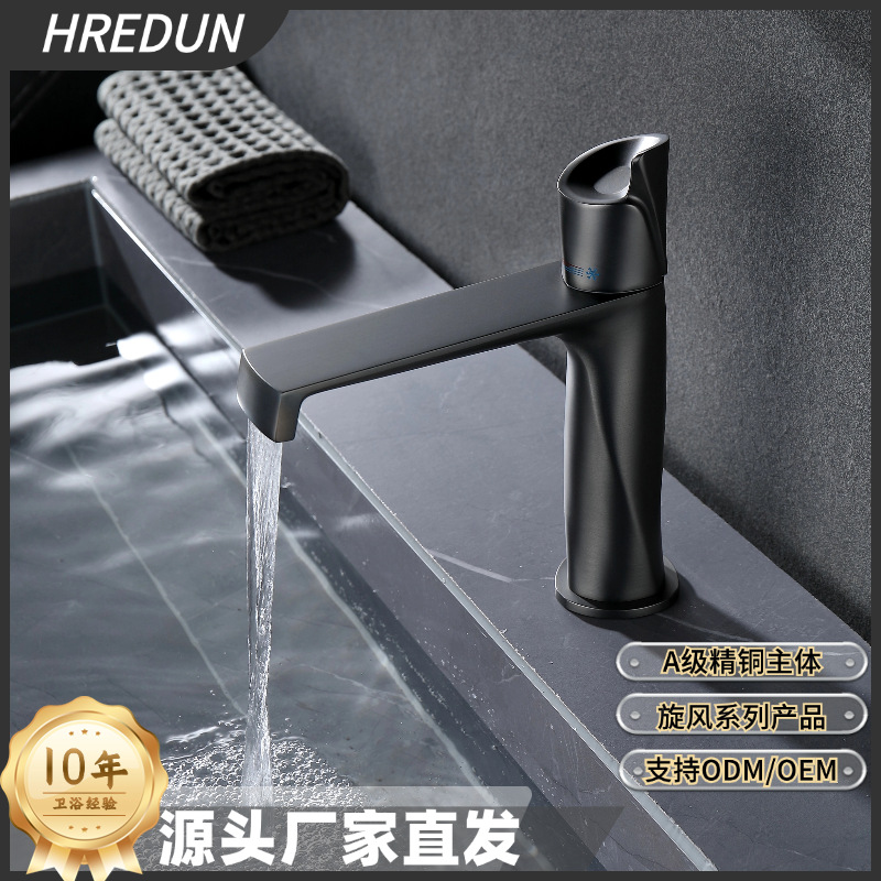 高端全铜冷热洗脸盆水龙头螺旋式瀑布出水旋风系列款面盆防溅水