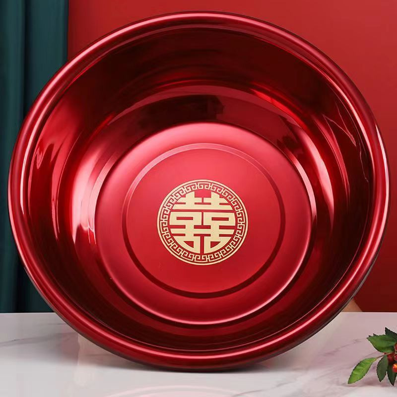 Grosir wastafel dapur besi tahan karat meriah wastafel merah merah semprotan kebahagiaan ganda warna menebal baskom pernikahan pernikahan pernikahan
