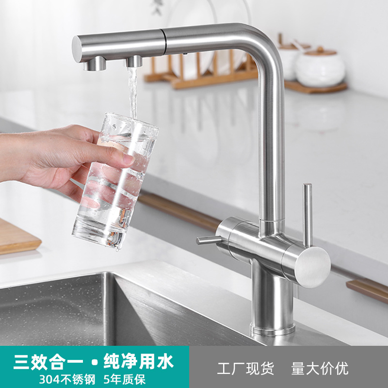 Batch langsung pabrik 304 stainless steel pemurni air panas dan dingin keran dapur dua-dalam-satu wastafel baskom sayuran keran tarik