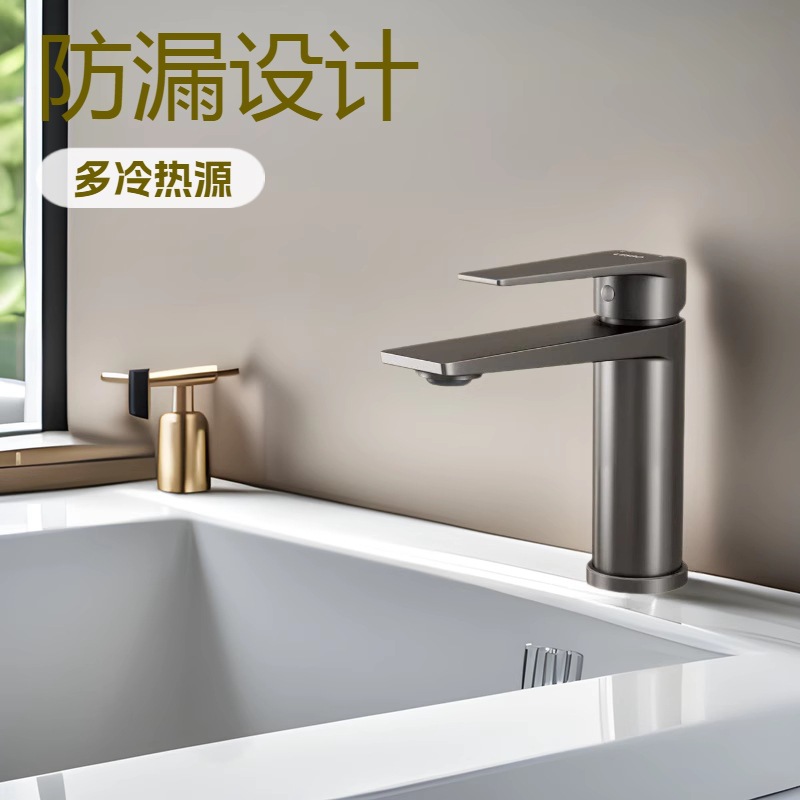 304 Grosir Keran Keran Keran Panas Dingin Kamar Mandi Baskom Cuci Tangan Rumah Tangga Baskom Tangan Keran Hitam Abu-abu