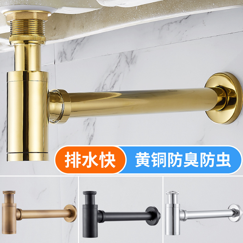 Pipa penguras dinding Semua tembaga, Aksesori pipa pembuangan wastafel, pipa saluran wastafel, deodoran