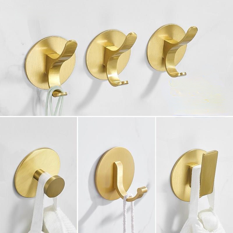 Gantungan dinding dengan kait tunggal, tempat gantungan dinding aluminium kuat lapis emas, viscose dapur, kamar mandi, kait lengket, kait gantung dinding tanpa paku