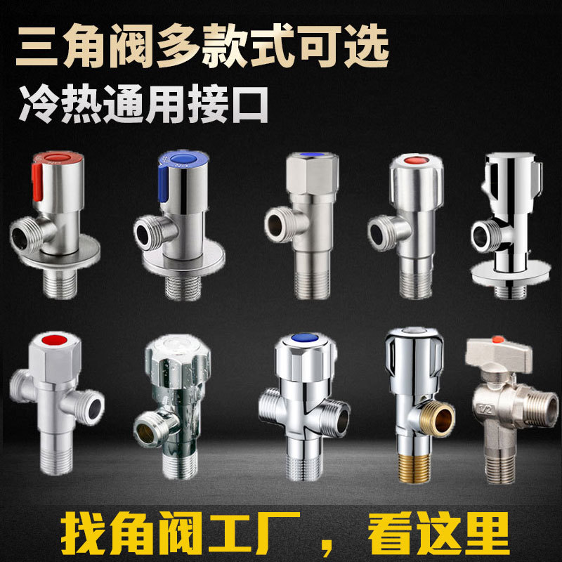 Katup segitiga lubang air ganda tembaga, satu dalam dua outlet tiga arah katup Segitiga air panas dan dingin delapan karakter katup sudut berhenti air pabrik grosir