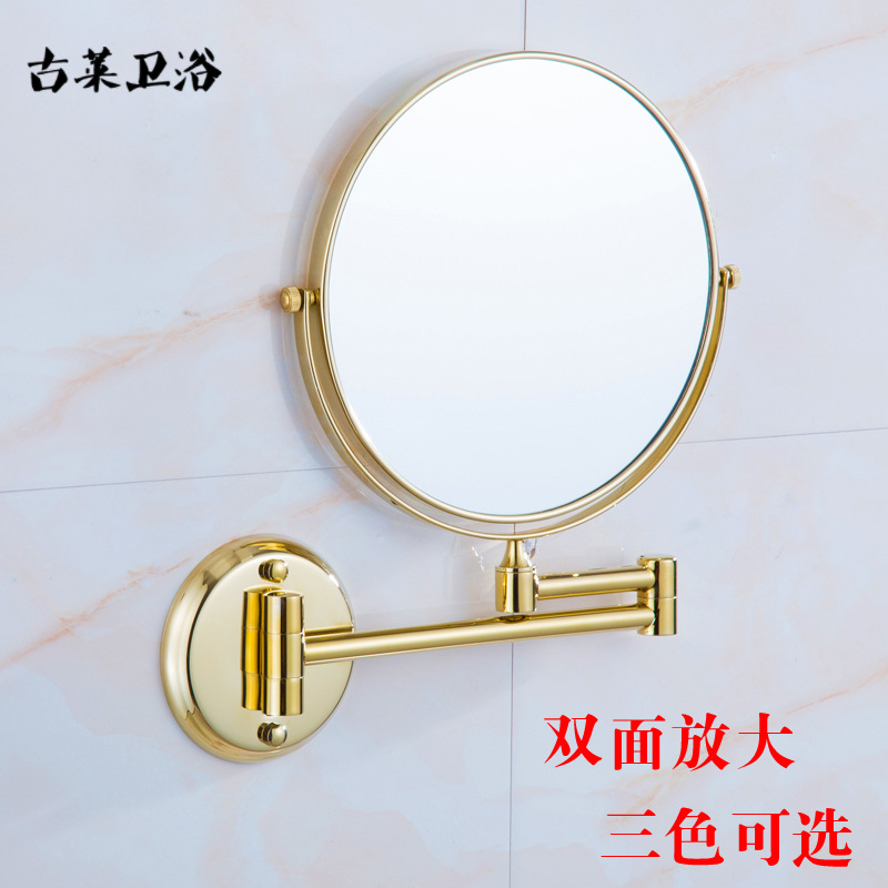 Cermin Kecantikan kamar mandi, kaca pembesar berlapis emas gaya Eropa dua sisi dapat ditarik gantungan dinding kamar mandi 8 inci