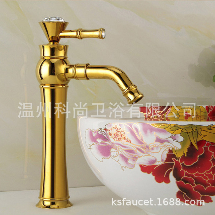 Keran emas tembaga berlian air panas dan dingin, keran emas tinggi, keran seni lintas batas perdagangan luar negeri