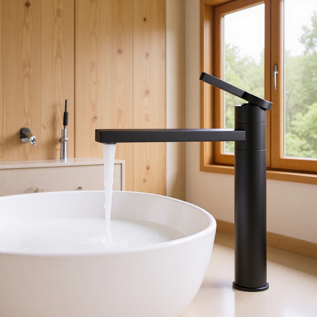 Keran wastafel rumah tangga, hitam Semua tembaga lubang tunggal panas dan dingin peningkatan meja hitam bak cuci berputar