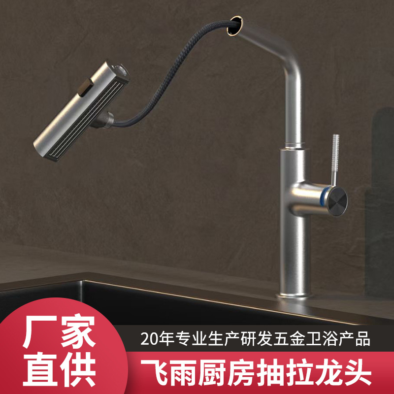 Keran wastafel dapur, alat rumah tangga Feiyu keran air terjun panas dan dingin tarik ke luar modern sederhana