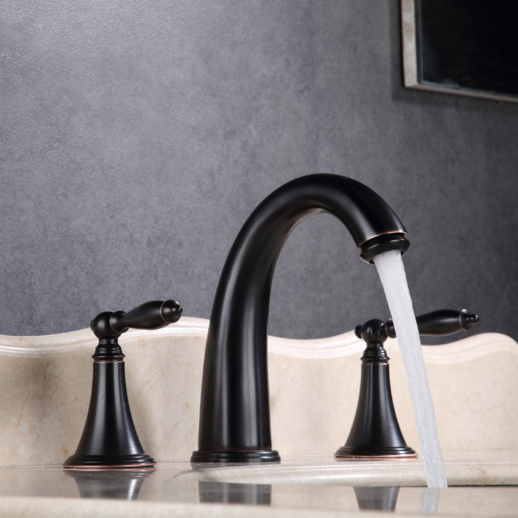 Grosir Pabrik tembaga tiga potong keran emas antik hitam kuno tiga lubang meja terpisah keran wastafel