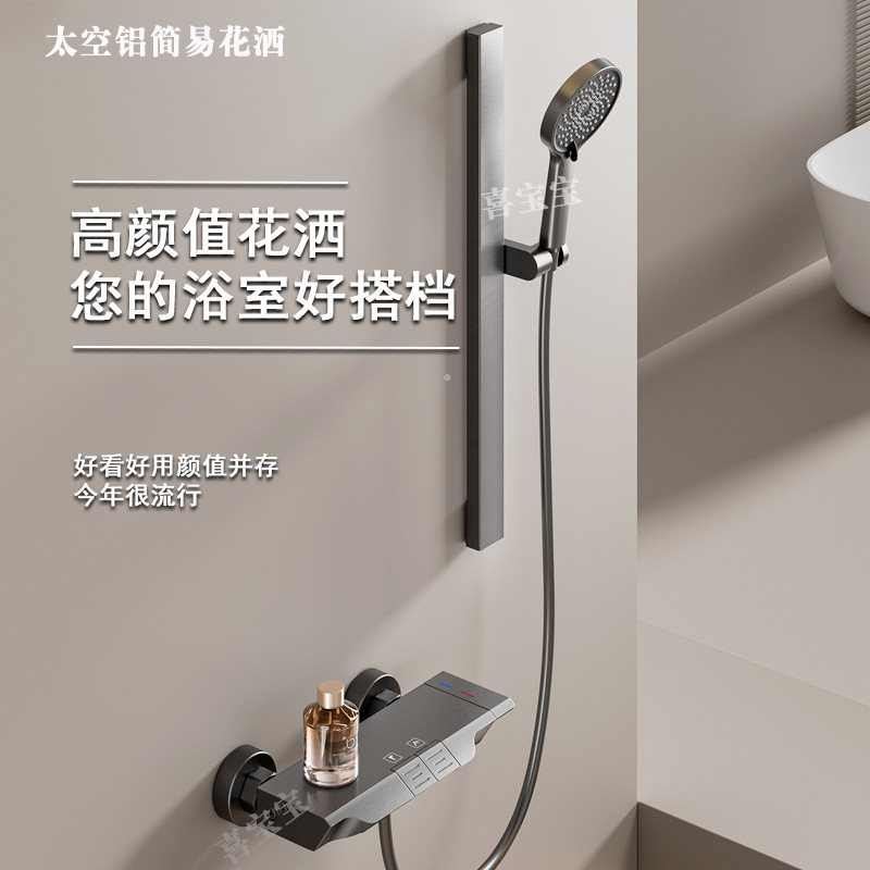 无顶喷淋浴轻奢花洒卫生间灰色北欧简约简易家用增压分体式浴室头