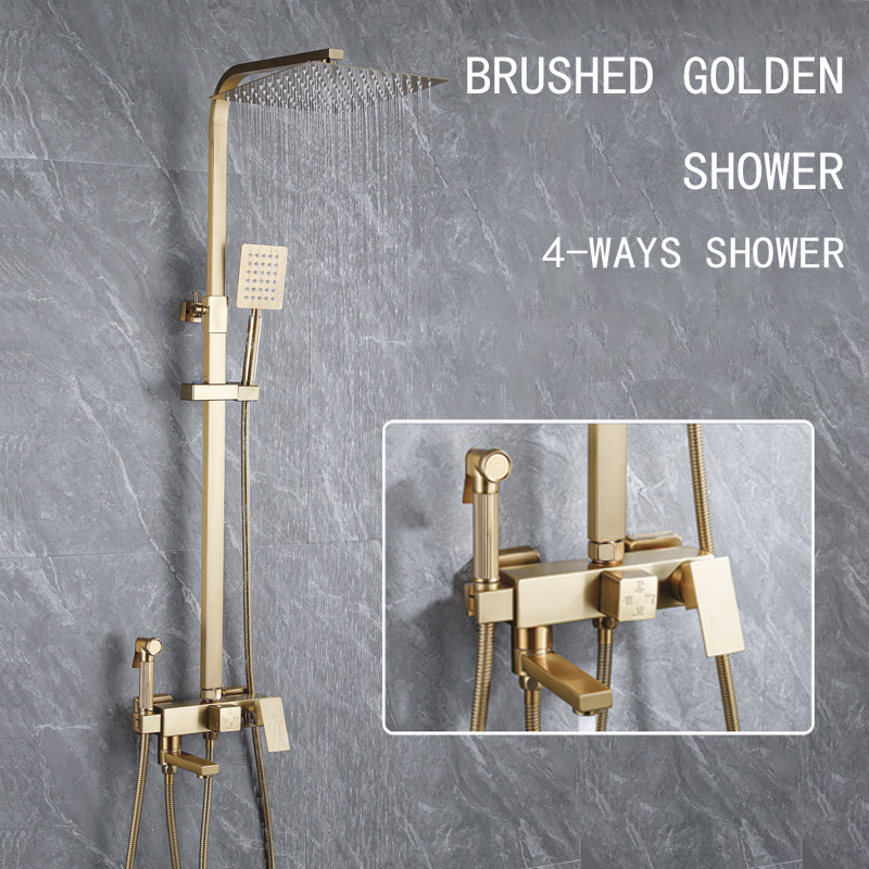 拉丝金花洒套装家用简约轻奢淋浴器卫生间浴室增压套装带喷枪跨境