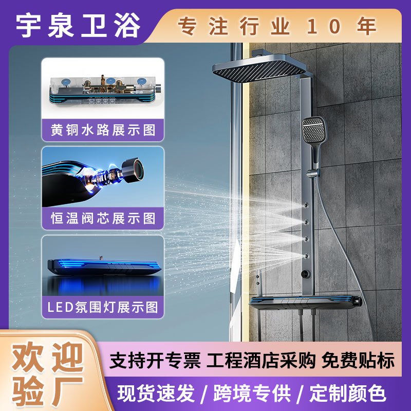 跨境全铜淋浴器花洒套装恒温家用智能数显淋浴琴键花洒全套一整套
