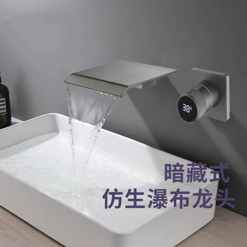 Keran wastafel abu-abu di dinding, keran bak mandi kamar mandi, keran wastafel tersembunyi pistol abu-abu di dinding bahan tembaga