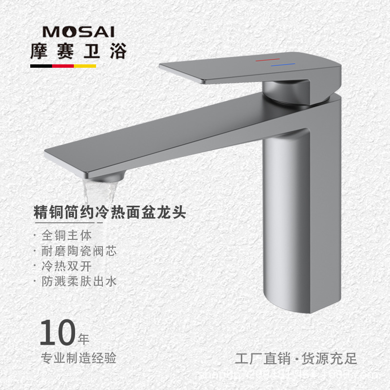 Keran stainless steel 304 sederhana perdagangan luar negeri lintas batas bak kamar mandi air panas dan dingin campuran keran abu-abu pistol hitam