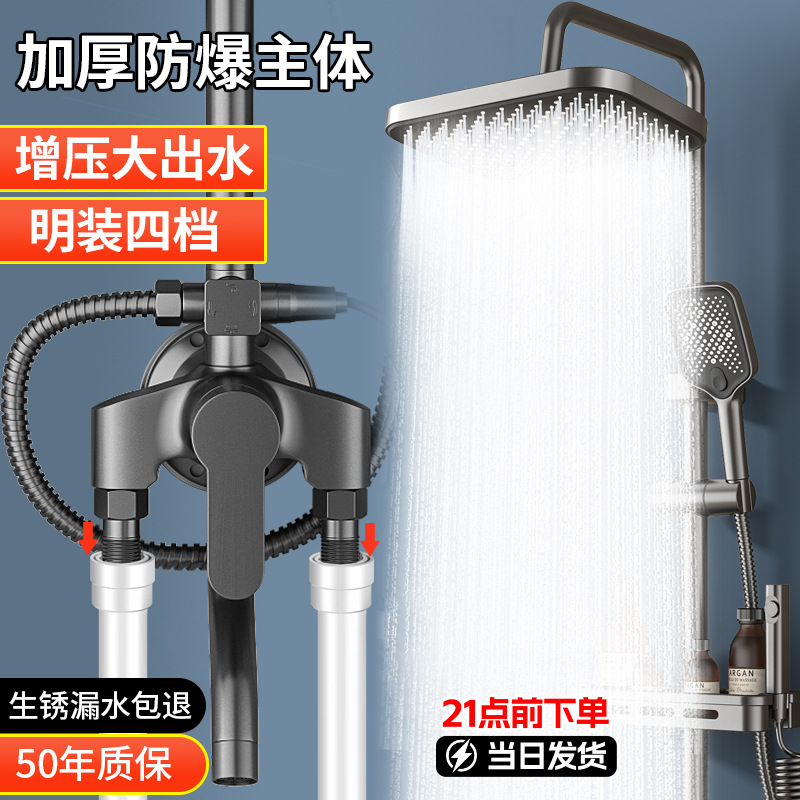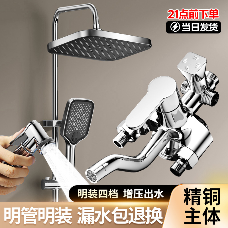 明装淋浴花洒套装洗澡增压全套卫浴沐浴淋雨花晒明管混水阀淋浴器