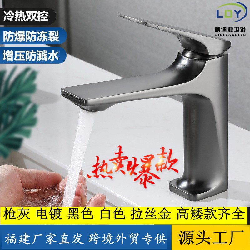 Keran Baskom Perdagangan Luar Negeri Pistol Air Panas Dingin Abu-abu Model Baru Lemari Kamar Mandi Kamar Mandi Keran Baskom Cuci Tangan Balkon