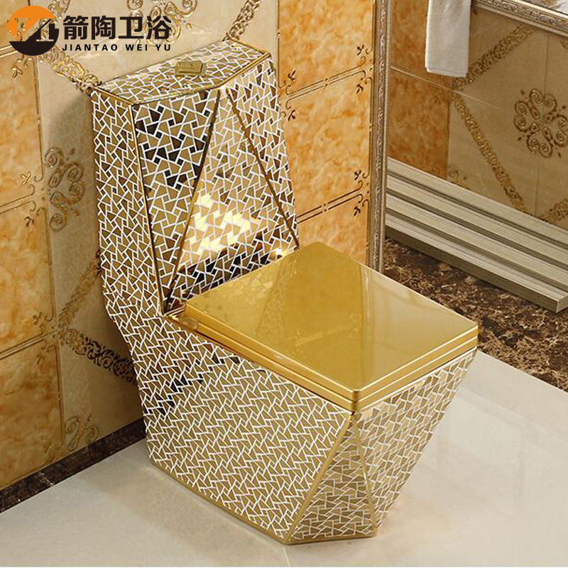 Timur Tengah Hot Sale Toilet Emas Plating Keramik Super Berpusaran Hemat Air Anti Bau Toilet Mewah Duduk Berwarna