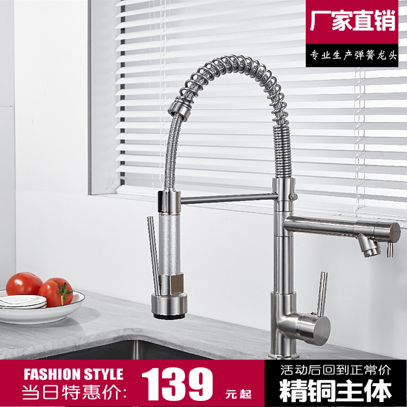 Keran dapur panas dan dingin lintas batas, keran teleskopik, keran wastafel pull-out, keran cuci sayur tembaga melar