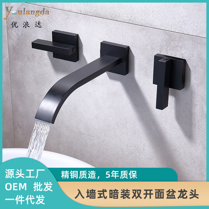 Keran wastafel air dinding pemipaan Guangdong keran dinding tersembunyi tiga lubang panas dan dingin