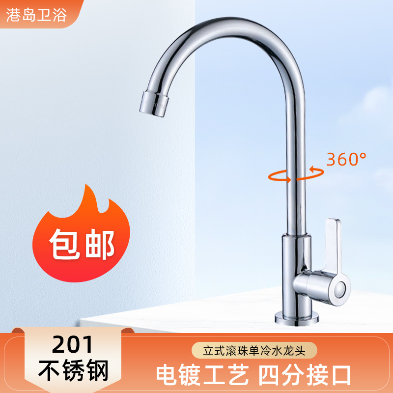 Keran wastafel dingin vertikal bulat, keran wastafel tunggal Stainless steel, keran wastafel sayuran, keran dapur, penjualan langsung pabrik
