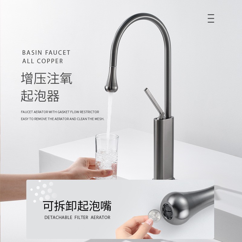 Keran wastafel kuningan 30mm pistol abu-abu electroplating keran panas dan dingin keran penghitung tinggi Apple lubang tunggal