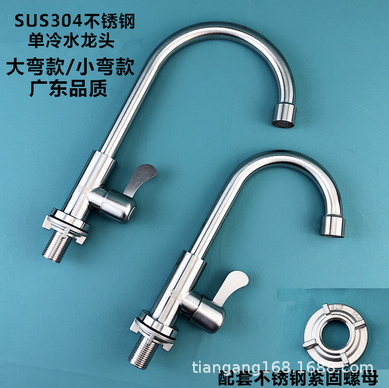 Keran dapur stainless steel, keran dapur stainless steel 304, keran wastafel tunggal, keran dingin berputar, keran wastafel cepat