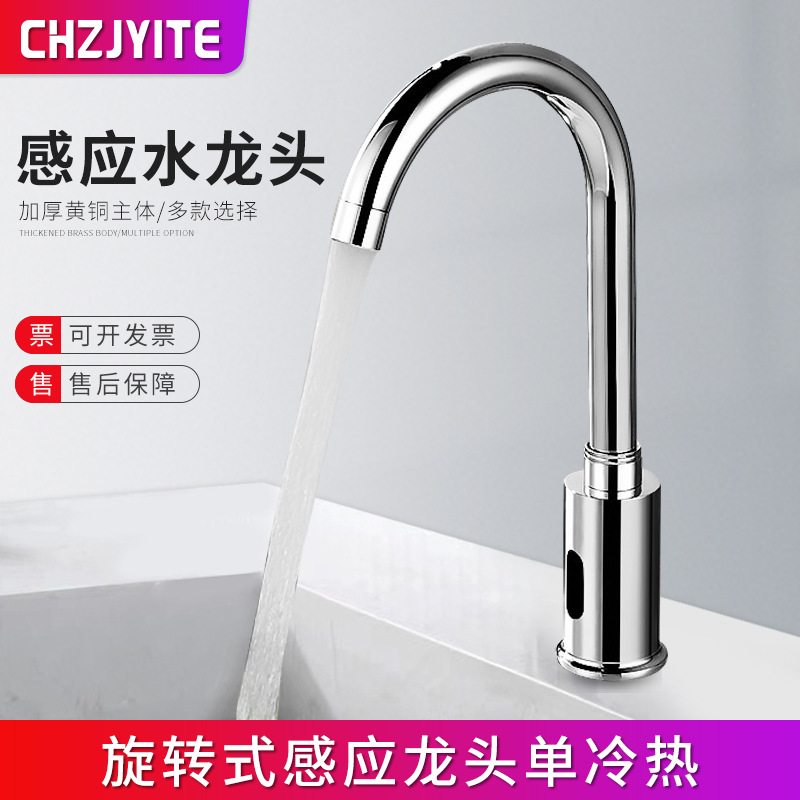 Keran cuci otomatis cerdas, wastafel rumah tangga putar kontrol inframerah tunggal dan panas tembaga